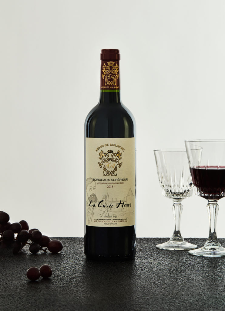 The blend of Merlot, Cabernet Franc, Cabernet Sauvignon and Malbec reveals aromas of red fruits, blackcurrant and delicately woody notes on the nose.